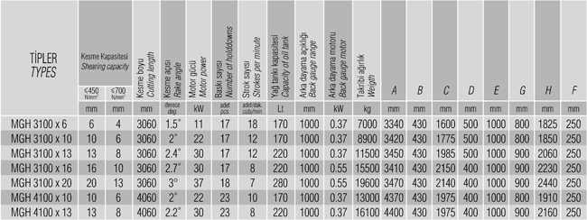 Maksimum 250 mm genişliğinde devamlı şerit kesmeye elverişli ayak boğaz derinliği.